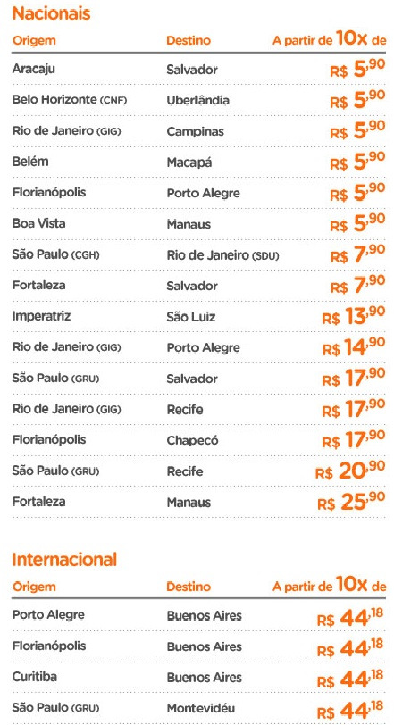 Além de todas essas vantagens, a Gol oferece toda semana uma oferta de voos a seus clientes que vale a pena conferir. São vários destinos por preços super em conta.